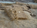目前,受季节影响,化石发掘暂时中止,工作人员用塑料布和草毡将化石挖掘点进行覆盖保护。
